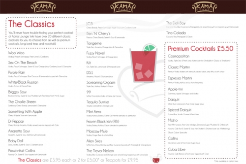 Unique in design, the venue and its staff offer laid-back, friendly service enhanced by superb facilities. A blend of contemporary and vintage themes transcends the food and drink menu, decor and audiovisual entertainment, submersing our customers in a world of old and new. At Kama Lounge our approach to food is simple. Source the freshest ingredients, prepared by top chefs, tailored to suit our customers. Why not create your ideal eat-in or takeout dish with our simple 3-step, create-your-own option or alternatively, select one of our delicious set dishes, created by our resident chefs. A range of vegetarian and gluten-free options are also available. The Kama Lounge boasts an extensive range of premium alcoholic and non-alcoholic refreshments. Whether you want to quench your thirst with one of our premium cocktails, or you fancy sipping on one of our bottled world beers, we can provide a drink to match the mood (even if it is just a cuppa!).